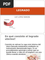 En cirugía, el legrado o curetaje consiste en el uso de una legra o cureta para eliminar tejido del útero mediante raspado o cucharillado. Peroperatoria fueron obtenidos mediante el estudio. Los diagnósticos histológicos del legrado. Procedimiento ginecológico que se realiza para tomar muestras de tejido endometrial, quitar los restos tras un aborto espontáneo… El legrado es un procedimiento ginecológico que se realiza para raspar y tomar tejido del interior del útero (tejido endometrial).
